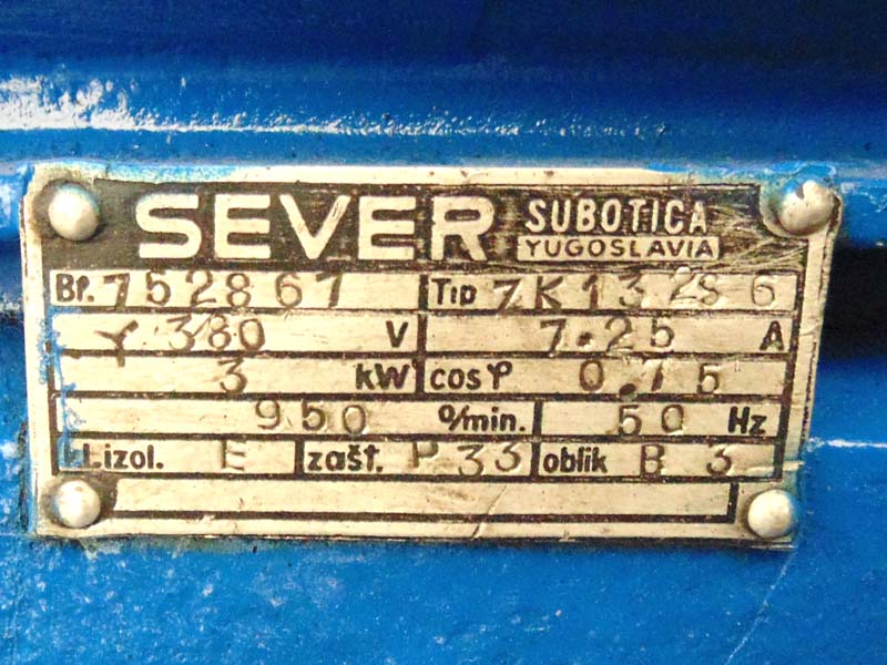 Engine power: 3 KW, engine speed 950 rpm.