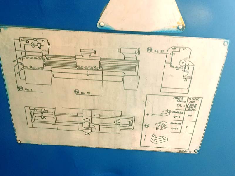The selection of the specific step is done via three main levers located on the front plate of the shear attachment of the machine. A precise table, which stands on the spindle, clearly defines the positions of the levers for each individual measure. It is important to note that for extremely large steps, a special transmission is used over the main spindle of the lathe.