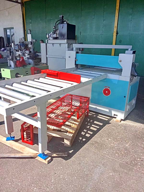 A robust machine (weighing over 1000 kg depending on the accompanying equipment) designed for stability and long-term operation in industrial conditions. The ideal machine for plants that produce pallets, furniture elements or construction carpentry, because the system with rollers and under-table saw output minimizes the physical effort of workers and increases the precision of repeated cuts.