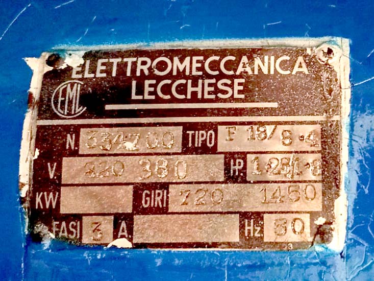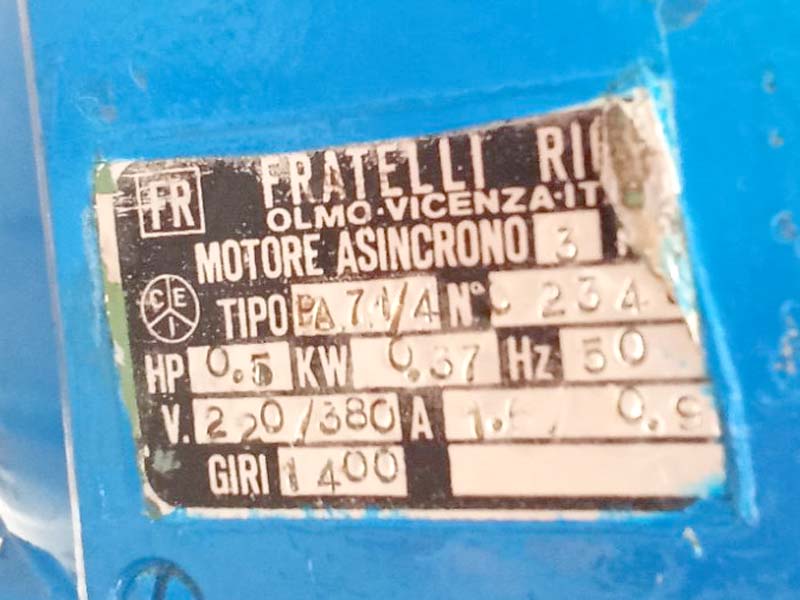 Engine power (two speeds): 1.2 or 1.8 HP, speed 720 or 1450 rpm.