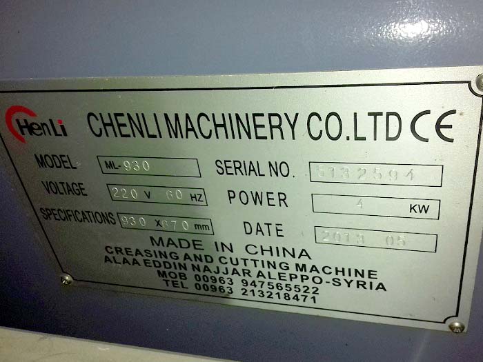 Chenli Machinery ML930 is high-precision die-cutting and creasing press.