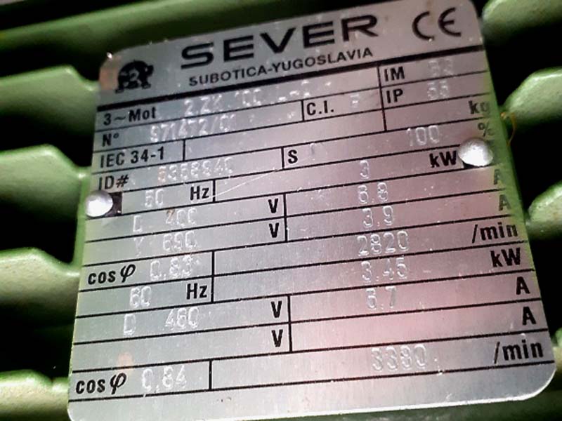 Мощность каждого двигателя: 3 кВт, скорость 2820 об / мин.