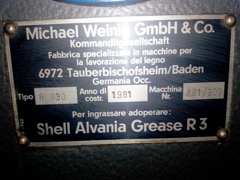 Производитель: Michael Weinig Gmbh & Co., тип станка: R 930.