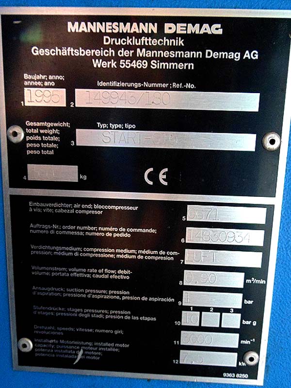 Модель Mannesmann Demag Start 10 (также может обозначаться как CompAir Start 0101) — это компактный винтовой компрессор. Инженеры разработали это устройство для промышленного использования в замкнутых пространствах. Он обеспечивает постоянный поток воздуха с высокой степенью надежности. Компрессор работает тихо и требует минимального технического обслуживания во время работы.