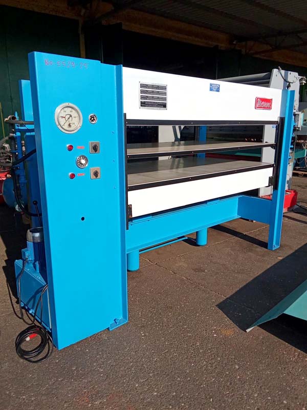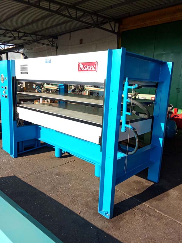 Многоступенчатый гидравлический пресс для шпона с нагревательными плитами.