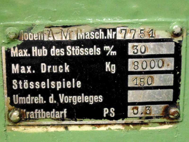 Рабочий стол размером 300 x 265 мм позволяет удобно размещать заготовки. При этом расстояние от поршня до основания составляет сто тридцать миллиметров. Массивный маховик диаметром 500 мм поддерживает стабильную инерцию системы. В завершение отметим, что модель фирмы Albert Mussmann поступила в продажу как качественный импорт из ЕС.