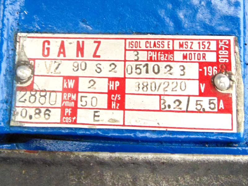 Snaga glavnog motora: 1,5 KW (2 KS), brzina 2880 ob/min.