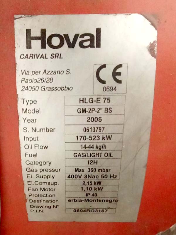 Marka: HOVAL, tip gorionika HLG-E 75, model GM-2P-2″ BS.