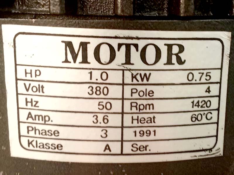 Snaga motora: 1 KS (0,75 KW), brzina 1420 ob / min.
