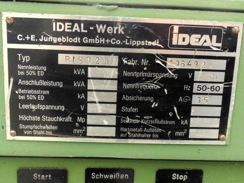 Vollmer sto za varenje je proizvod nemačke kompanije Ideal-Werk, a model je BLS 320. U pitanju je uređaj za elektrootporno sučeono zavarivanje.